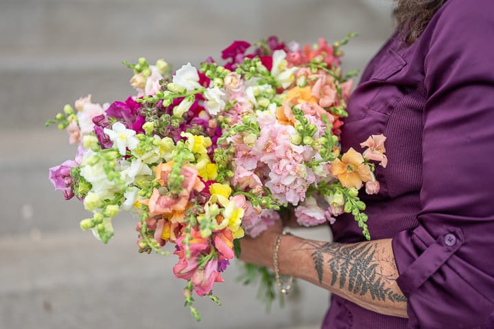 That lower level has become a central part of Victoria’s Garden’s evolution. The space is now a venue for floral classes, workshops, and events. One of its signature offerings is the Bloom Bar, a DIY floral station open every Friday from noon to 5:00 pm, where customers can handpick stems and create their own arrangements, offering a hands-on experience where they can engage with flowers in a creative, community-driven way.